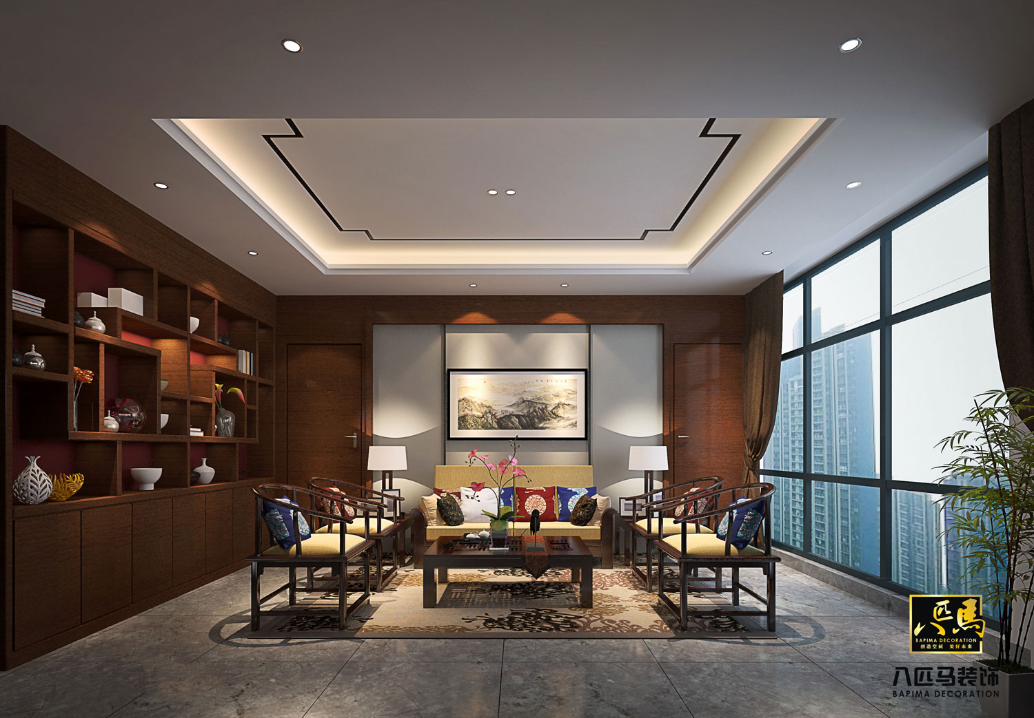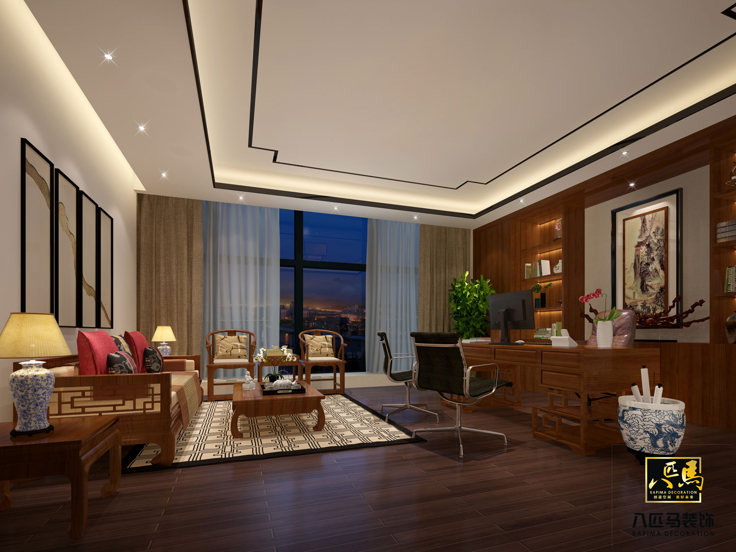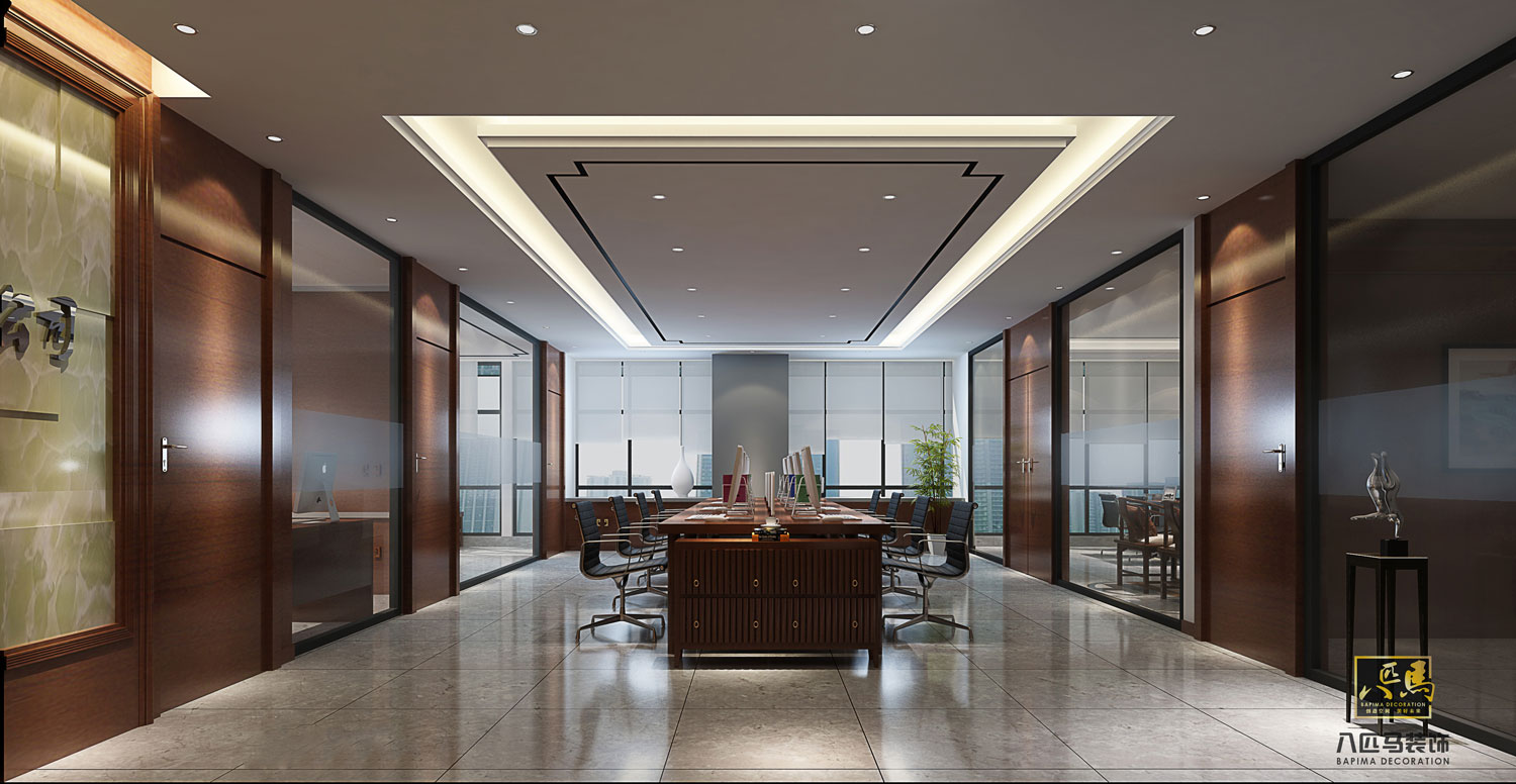 設(shè)計(jì)風(fēng)格:該司的辦公室設(shè)計(jì)風(fēng)格為新中式風(fēng)格,運(yùn)用大理石、木飾面、金屬線(xiàn)條及實(shí)木地板等中式元素加上現(xiàn)代元素的設(shè)計(jì)理念,時(shí)尚不失典雅,開(kāi)放辦公區(qū)采用裸頂方式,提高空間層高,讓空間更通透更舒適。