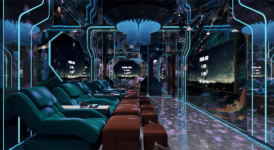 本設計為一家集 KTV、足浴、按摩于一體的休閑場所,整體風格奢華且富有科技感與時尚氛圍。