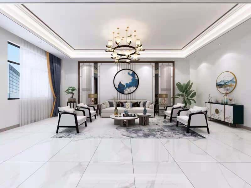 會客室,新中式風格盡顯典雅,山水掛畫、中式家具與現(xiàn)代元素融合,吊燈提升空間格調(diào),營造舒適洽談氛圍。