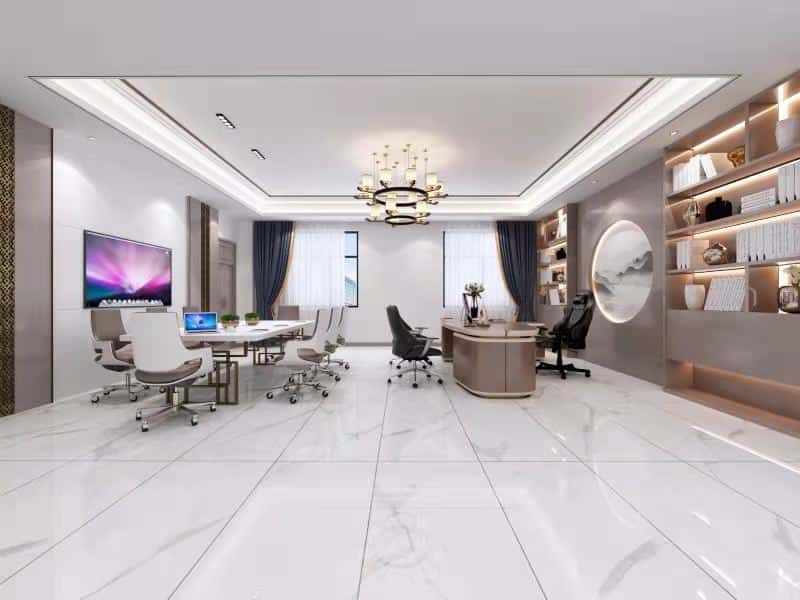 經(jīng)理辦公室,布局合理,辦公桌椅與休閑沙發(fā)搭配協(xié)調(diào),書架豐富空間層次,燈光設(shè)計柔和明亮,滿足辦公與接待需求。