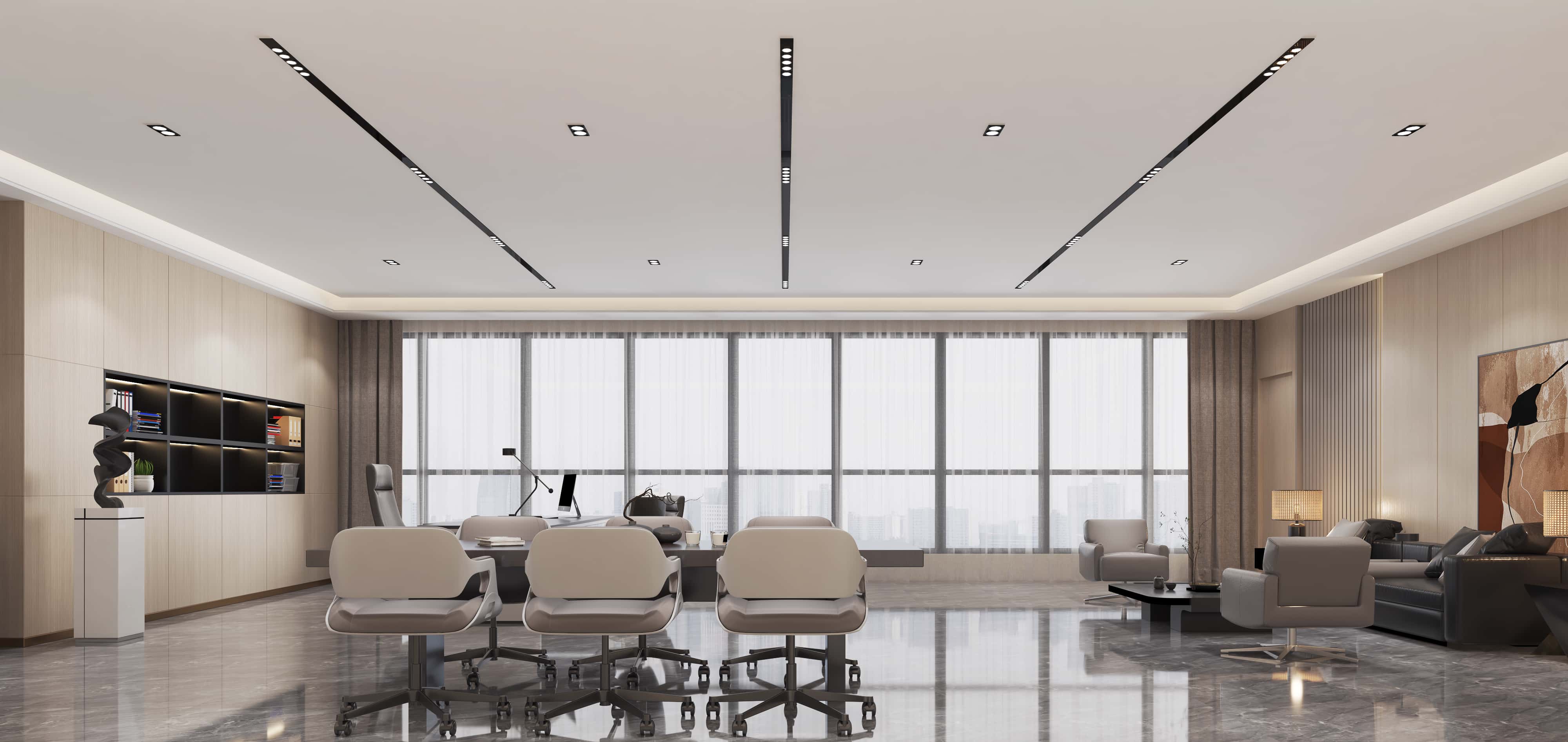 整體設計通過材質、色彩與燈光的巧妙搭配,營造出功能齊全、風格鮮明且舒適宜人的辦公環(huán)境。