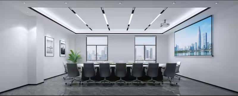 會議室,空間寬敞明亮,桌椅擺放整齊,大屏幕方便展示,采光良好,窗外景色宜人,營造出專業(yè)高效的會議環(huán)境。