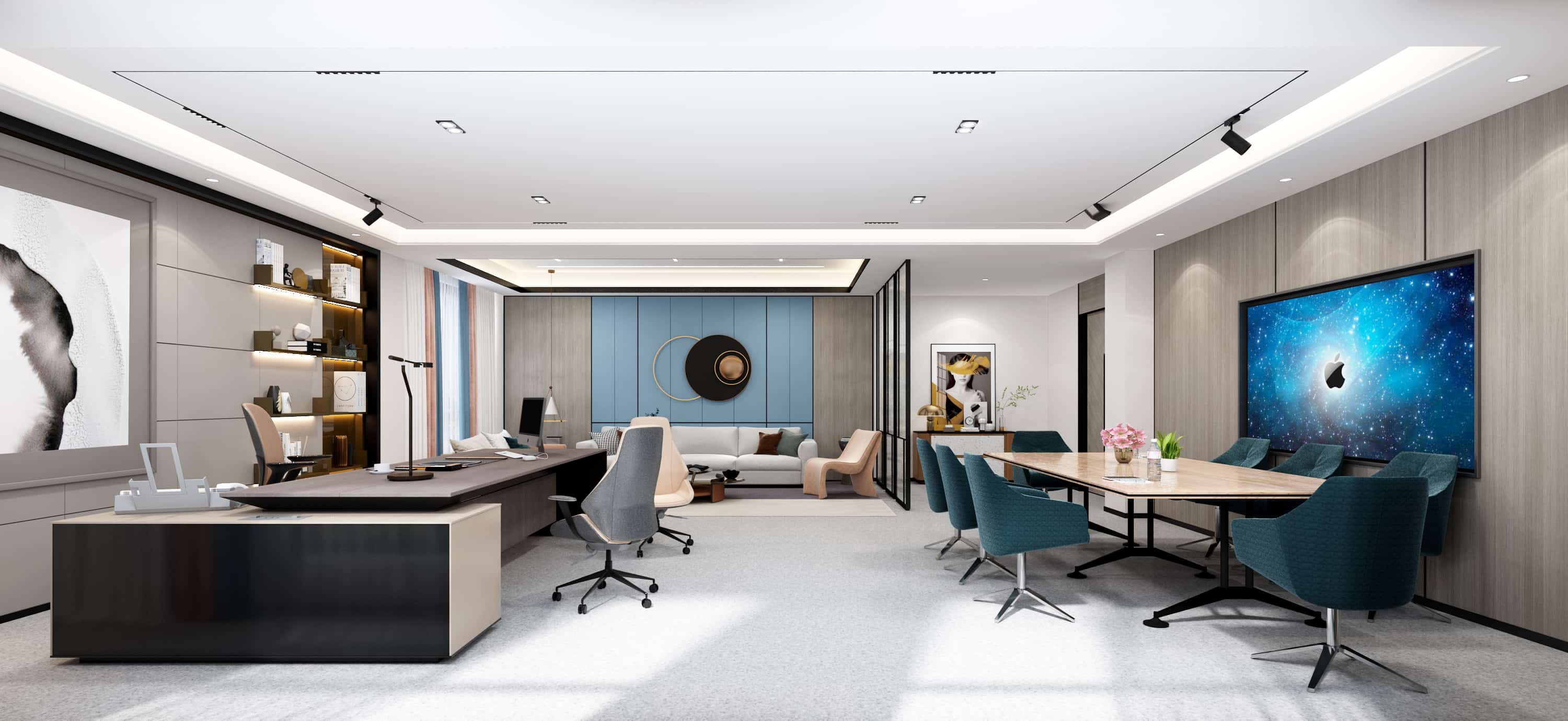 這些辦公空間設(shè)計注重細(xì)節(jié)與整體風(fēng)格的統(tǒng)一,通過色彩、材質(zhì)、燈光及軟裝的搭配,打造出舒適、現(xiàn)代且富有品味的辦公環(huán)境,旨在提升員工的工作效率與幸福感,同時也給來訪者留下良好的印象。