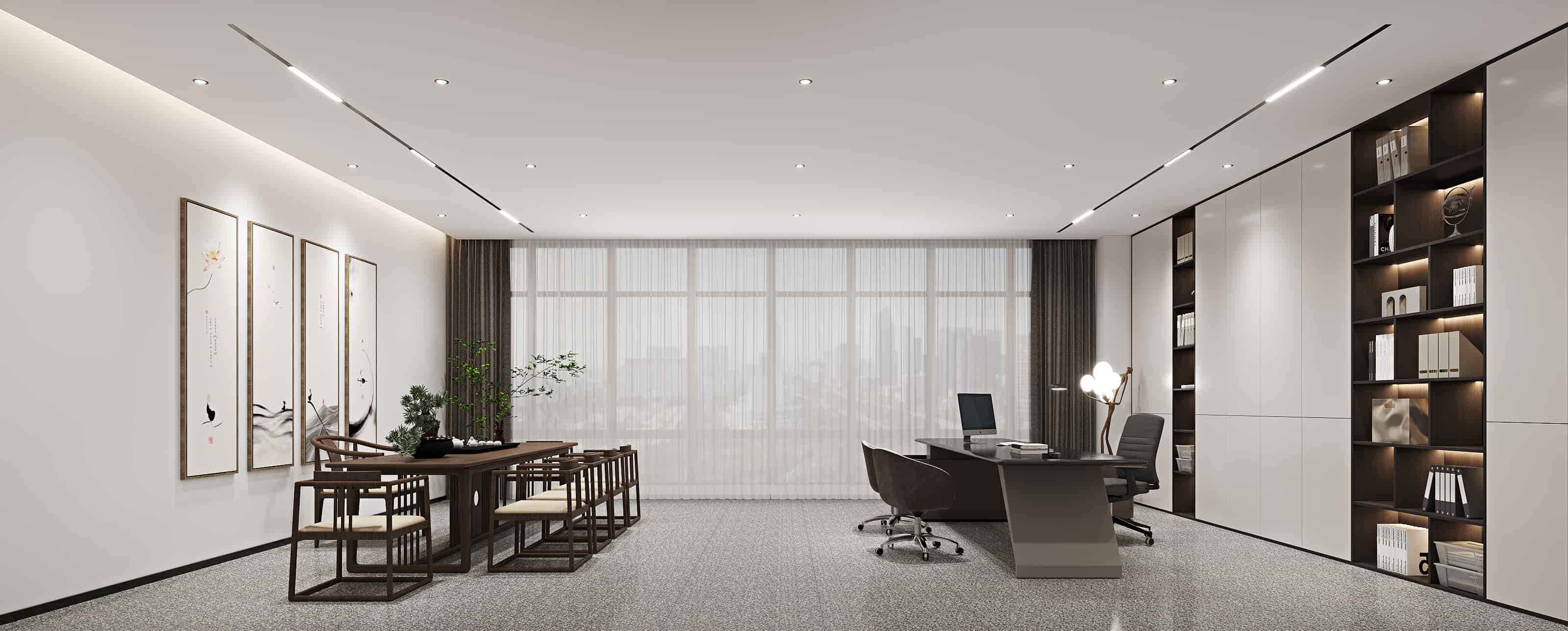 部分辦公室內(nèi)懸掛的中式風(fēng)格裝飾畫,為空間增添了一份寧靜與雅致,體現(xiàn)了傳統(tǒng)與現(xiàn)代的融合,使辦公環(huán)境更具人文氣息。