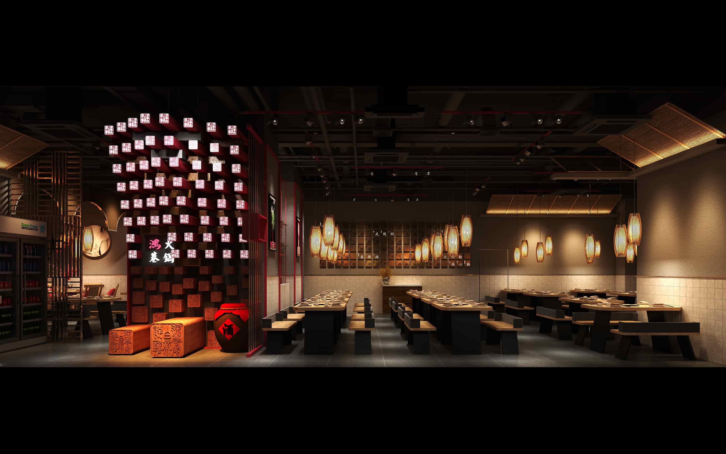 本設(shè)計(jì)為鴻巷火鍋餐廳,整體風(fēng)格融合傳統(tǒng)與現(xiàn)代,營造出獨(dú)特的就餐氛圍。