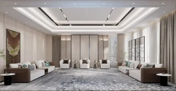 公司大門簡潔大氣,弧形設(shè)計與直線條結(jié)合,彰顯現(xiàn)代感與穩(wěn)重。大堂以金色為主調(diào),搭配綠植與藝術(shù)裝置,營造出高端且富有生機的氛圍。接待室布置舒適沙發(fā)與精致裝飾,營造溫馨洽談環(huán)境。會議廳整齊排列座椅,簡潔實用,滿足會議需求。展廳則運用流線型元素與科技感燈光,展示產(chǎn)品與企業(yè)形象,增強互動體驗。整體設(shè)計風(fēng)格統(tǒng)一,既體現(xiàn)企業(yè)實力與專業(yè)性,又融入人文關(guān)懷與現(xiàn)代科技元素,打造舒適且富有魅力的企業(yè)空間。