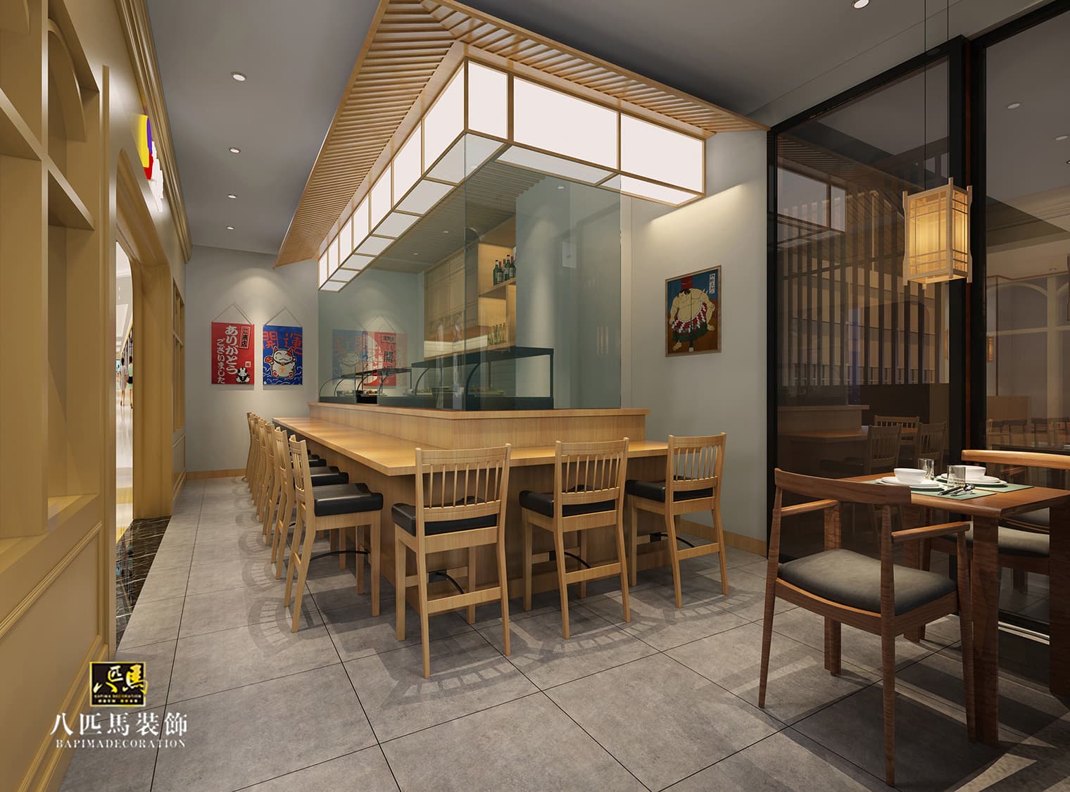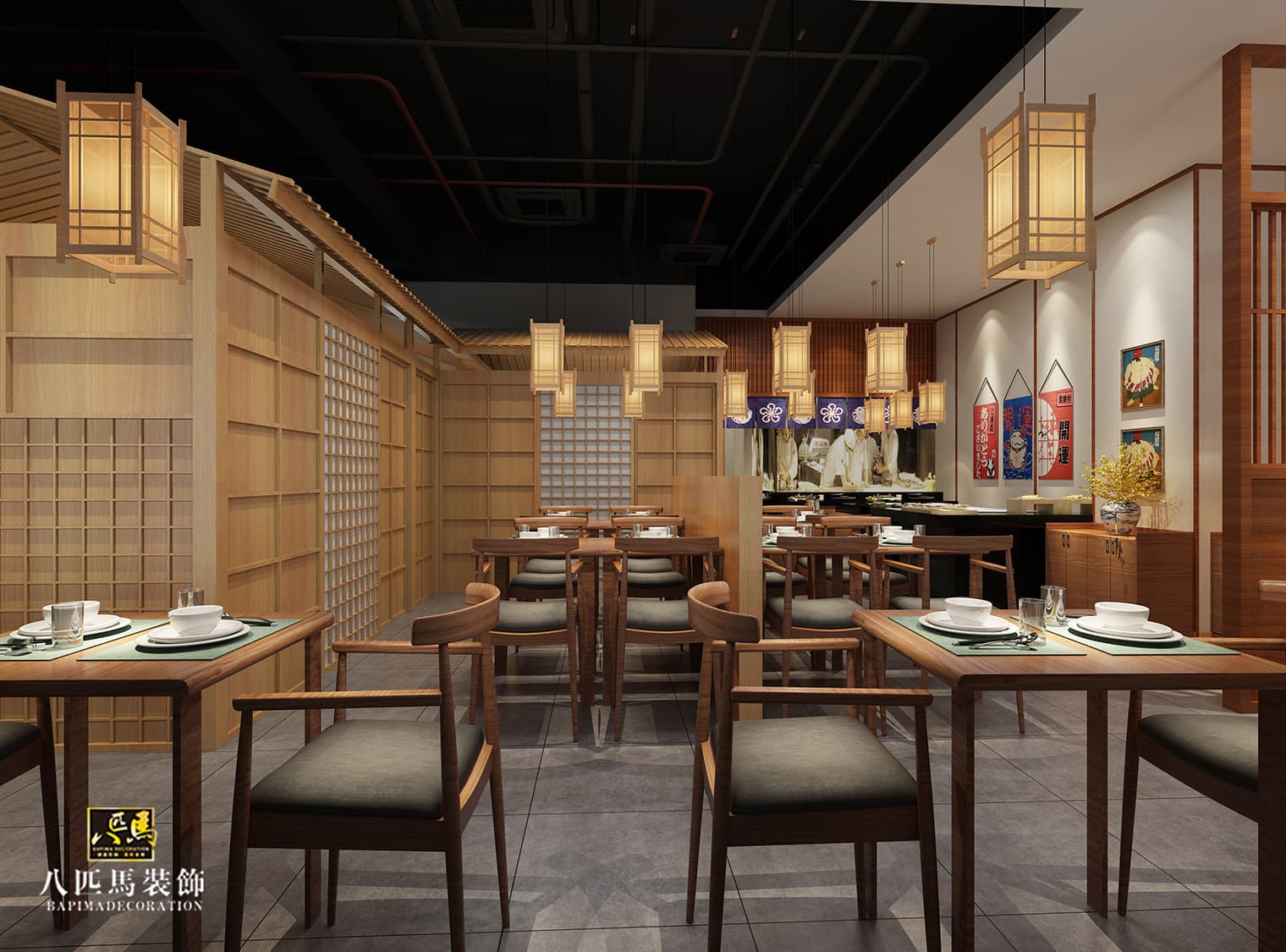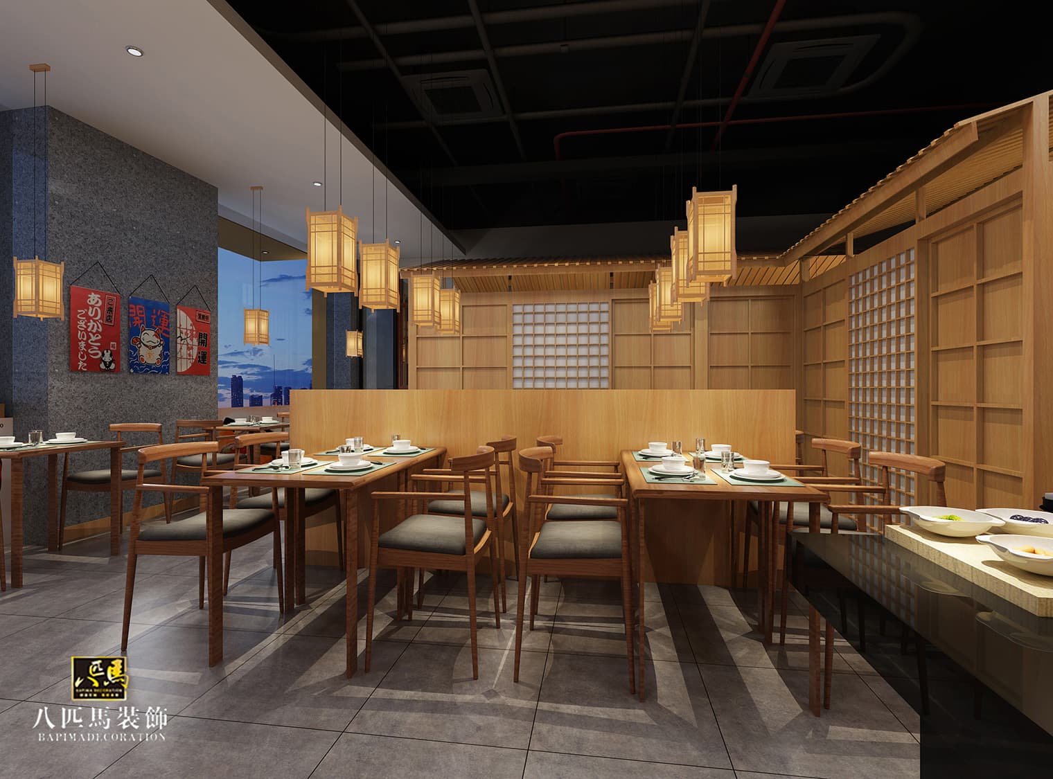 設(shè)計(jì)風(fēng)格:呈現(xiàn)的就餐氛圍清新自然、簡(jiǎn)潔淡雅。日式料理店裝修采用清晰的線條設(shè)計(jì),木質(zhì)、石材的天然裝修材質(zhì)被運(yùn)用于區(qū)域裝修設(shè)計(jì)中,