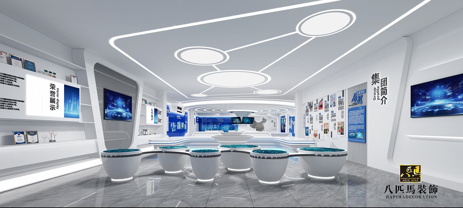 設(shè)計風(fēng)格:采用了物聯(lián)網(wǎng)、大數(shù)據(jù)相融合的方式,打造出獨一無二、令人眼前一亮、讓人映像深刻的未來科幻辦公室展廳,整體創(chuàng)意源自好萊塢大片中的未來科幻場景,