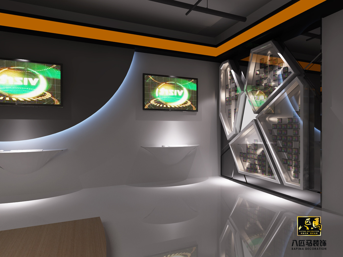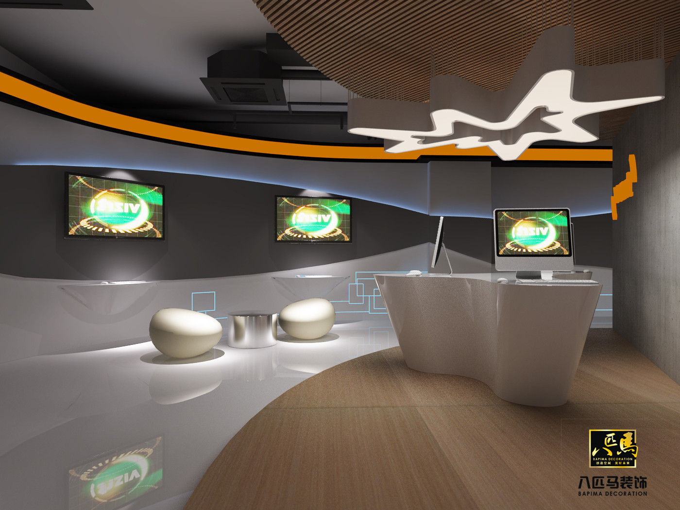 設(shè)計(jì)風(fēng)格:本展廳設(shè)計(jì)案例以企業(yè)的發(fā)展為脈絡(luò),把過道設(shè)計(jì)成企業(yè)文化展示墻,讓體驗(yàn)者第一視覺能對企業(yè)強(qiáng)大的綜合實(shí)力有一個(gè)深刻的認(rèn)知。公共辦公區(qū)通過多維影像展示、造型燈箱等材質(zhì)相關(guān)系統(tǒng)功能架構(gòu)使辦公區(qū)與展示相結(jié)合以點(diǎn)亮智慧城市為主題,用智慧的眼睛來表現(xiàn),簡約流暢的線條,運(yùn)用企業(yè)色和科技元素,通過點(diǎn)線面的組合,營造簡約科技的現(xiàn)代多功能空間,打造全新智慧多媒體展廳